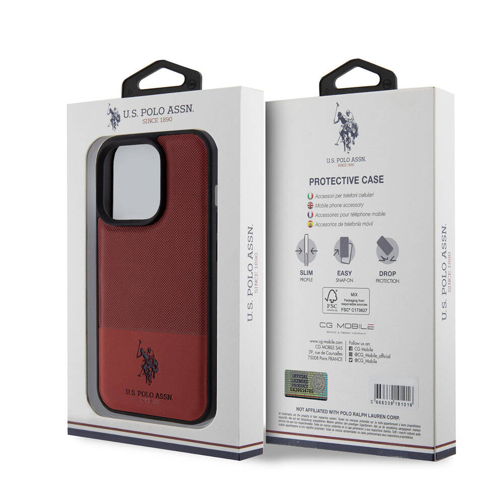Apple iPhone 15 Pro Kılıf U.S. Polo Assn. Orjinal Lisanslı Suni Deri Arka Yüzey Baskı Logolu Örgü Desenli Kapak Kırmızı