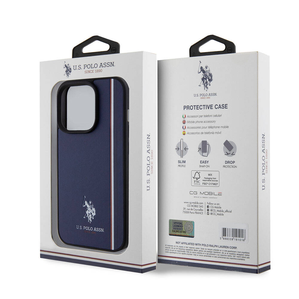 Apple iPhone 15 Pro Kılıf U.S. Polo Assn. Orjinal Lisanslı Üç Renk Şerit Tasarımlı Baskı Logolu Kapak Lacivert
