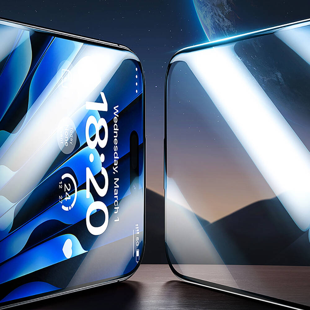 Temperli cam malzemesi ile gerçek tam ekran koruması.