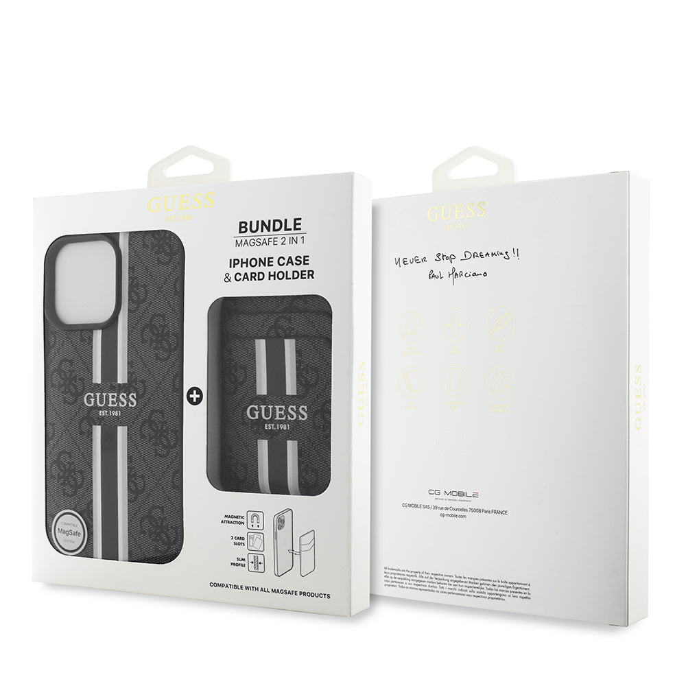 iPhone 15 Pro Max Kılıf Guess Orjinal Lisanslı Magsafe Şarj Özellikli 4G Desenli Çizgili Kartlıklı Kapak