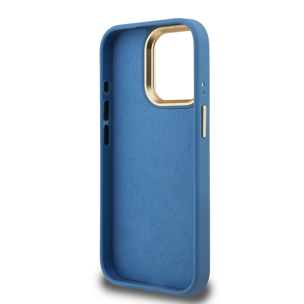 Apple iPhone 15 Pro Max Kılıf Guess Orjinal Lisanslı PU Deri 4G Desenli Metal Büyük 4G ve Yazı Logolu Kamera Standlı Kapak Mavi
