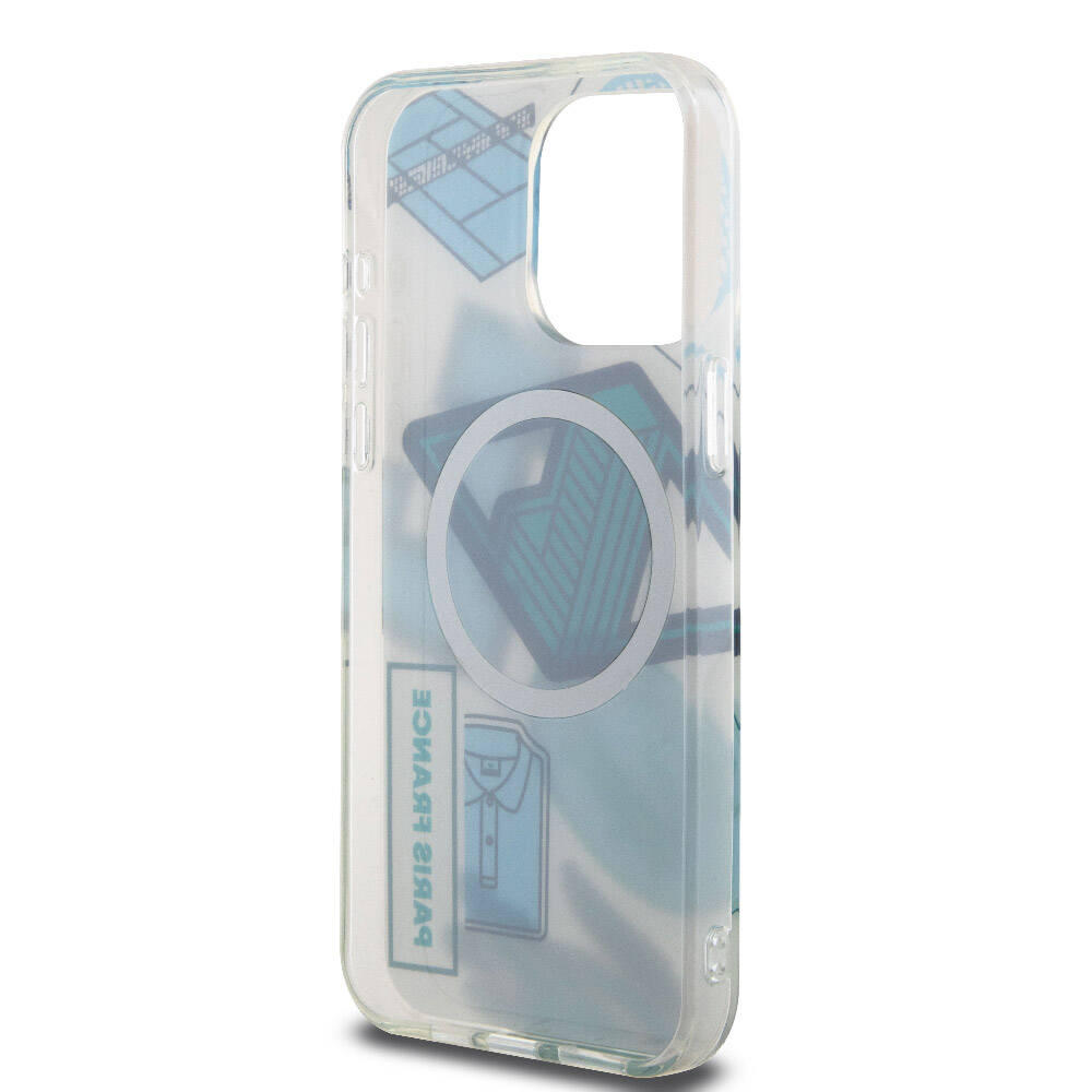 Apple iPhone 15 Pro Max Kılıf Lacoste Orjinal Lisanslı M-safe Şarj Özellikli Çift Katmanlı Yamalar Desenli Kapak Mavi