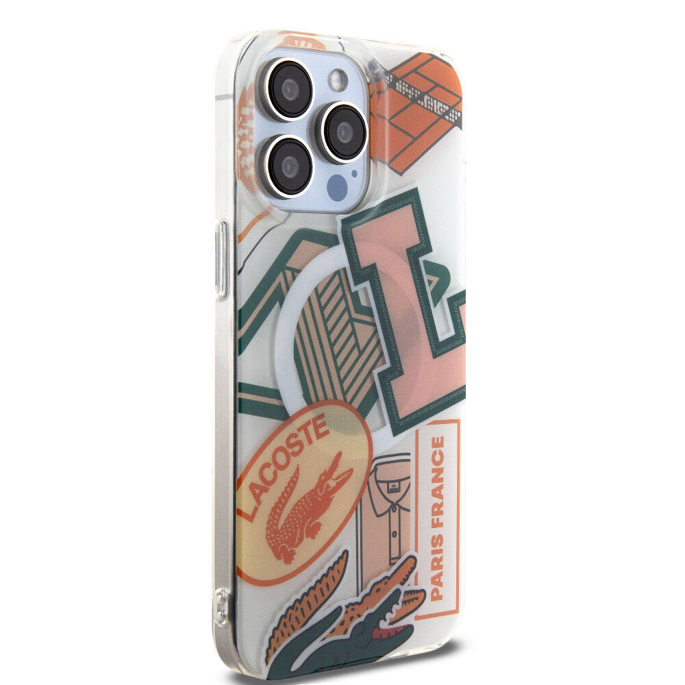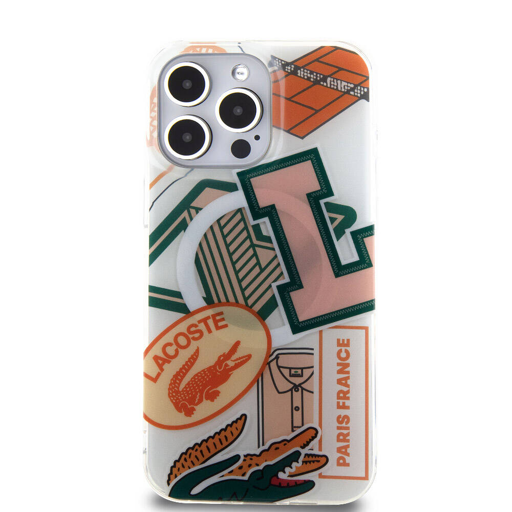 Apple iPhone 15 Pro Max Kılıf Lacoste Orjinal Lisanslı Magsafe Şarj Özellikli Çift Katmanlı Yamalar Desenli Kapak