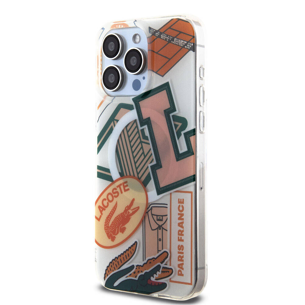 Apple iPhone 15 Pro Max Kılıf Lacoste Orjinal Lisanslı Magsafe Şarj Özellikli Çift Katmanlı Yamalar Desenli Kapak