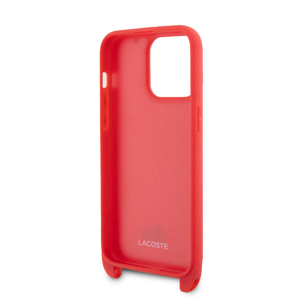 Apple iPhone 15 Pro Max Kılıf Lacoste Orjinal Lisanslı PU Pike Desenli Arka Yüzey Askılı İkonik Timsah Dokuma Logolu Kapak