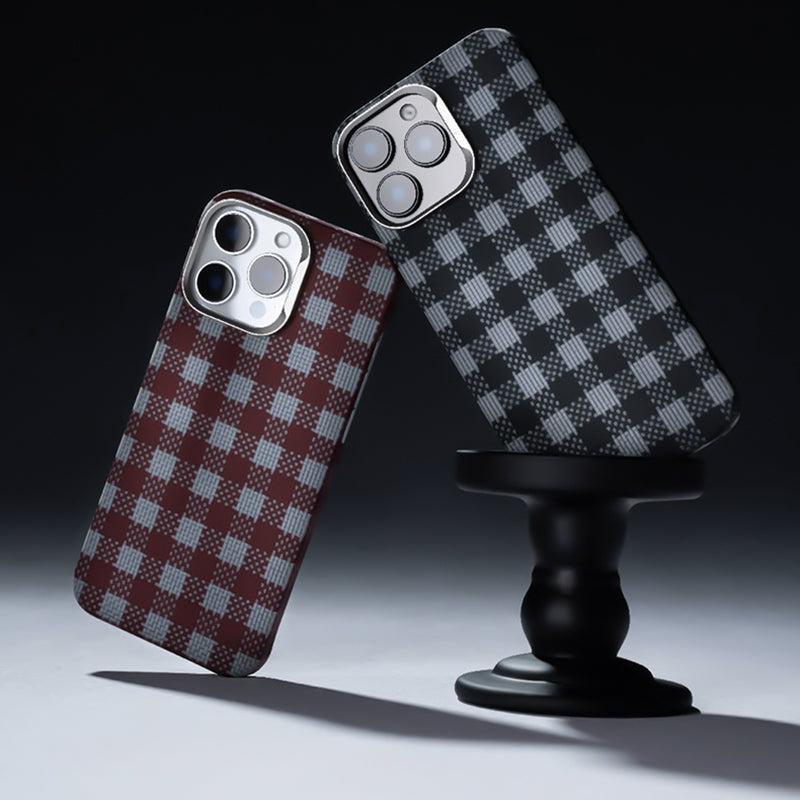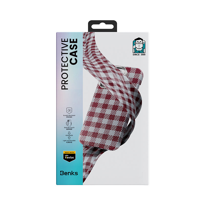 iPhone 15 Pro Max Kılıf M-safe Şarj Özellikli Ekose Tasarımlı Benks ArmorVichy Kevlar Kapak