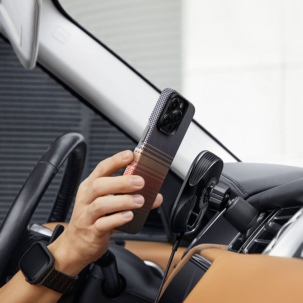 Aramid fiber, askeri ve havacılık teknolojilerinde kullanılan, darbelere karşı dayanıklı ve oldukça hafif bir malzemedir. Bu özel lifler insan saçından daha ince olmasına rağmen, çelikten daha güçlü bir koruma sağlar. Aramid fiberin dokusuyla şıklığı birleştiren Pitaka, telefonunuzu günlük aşınmalardan ve darbelere karşı koruyarak uzun ömürlü bir kullanım sunar.