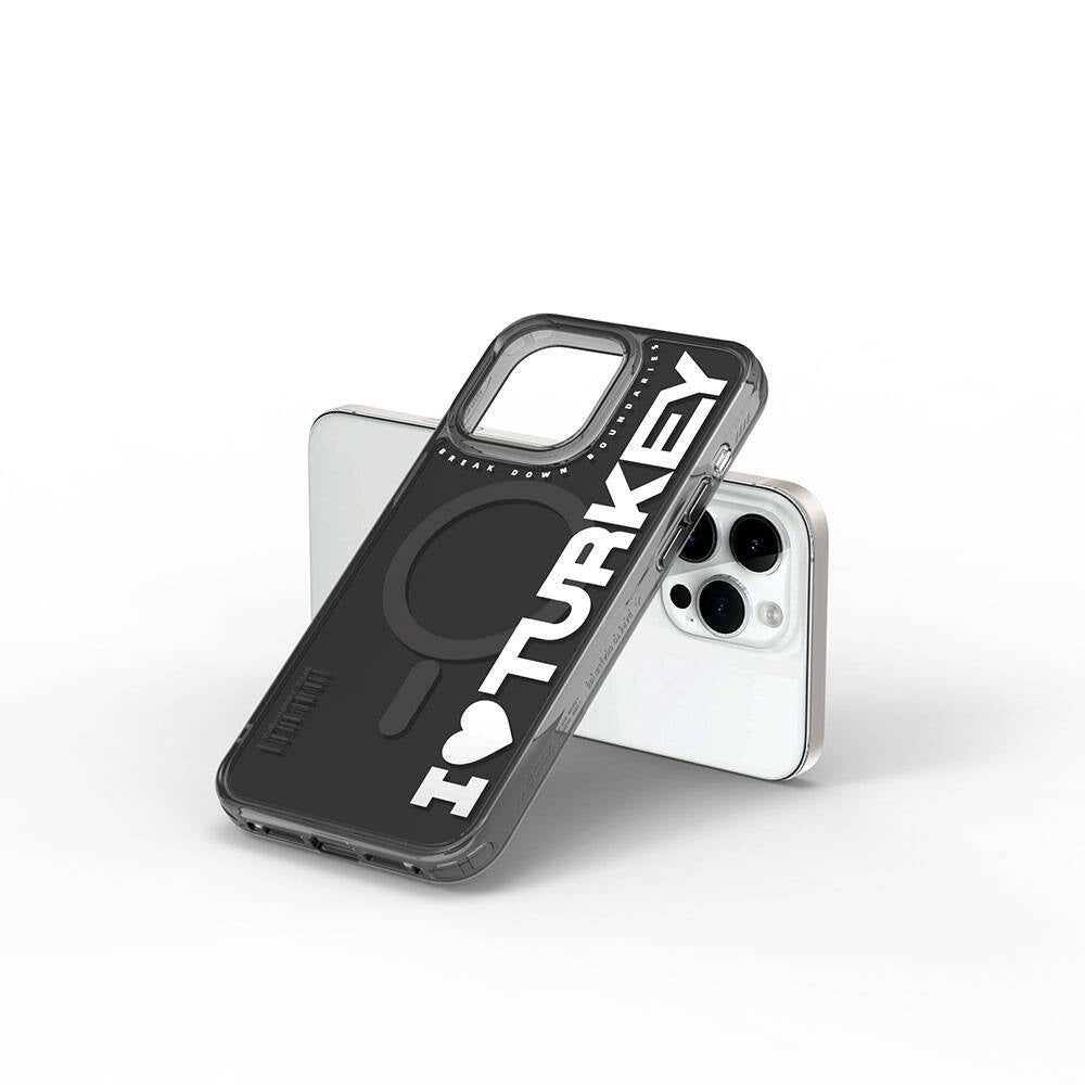 Apple iPhone 15 Pro Max Kılıf M-safe Şarj Özellikli I Love Turkey Yazı Desenli Wiwu Turkey E Serisi Kapak Yeşil