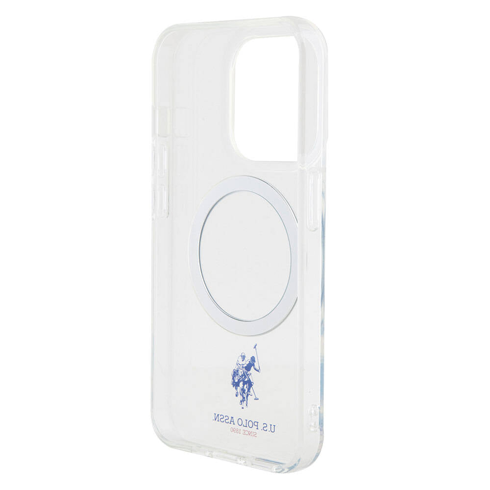 Apple iPhone 15 Pro Max Kılıf U.S. Polo Assn. Orjinal Lisanslı M-safe Şarj Özellikli Transparan Tasarım Kapak Mavi