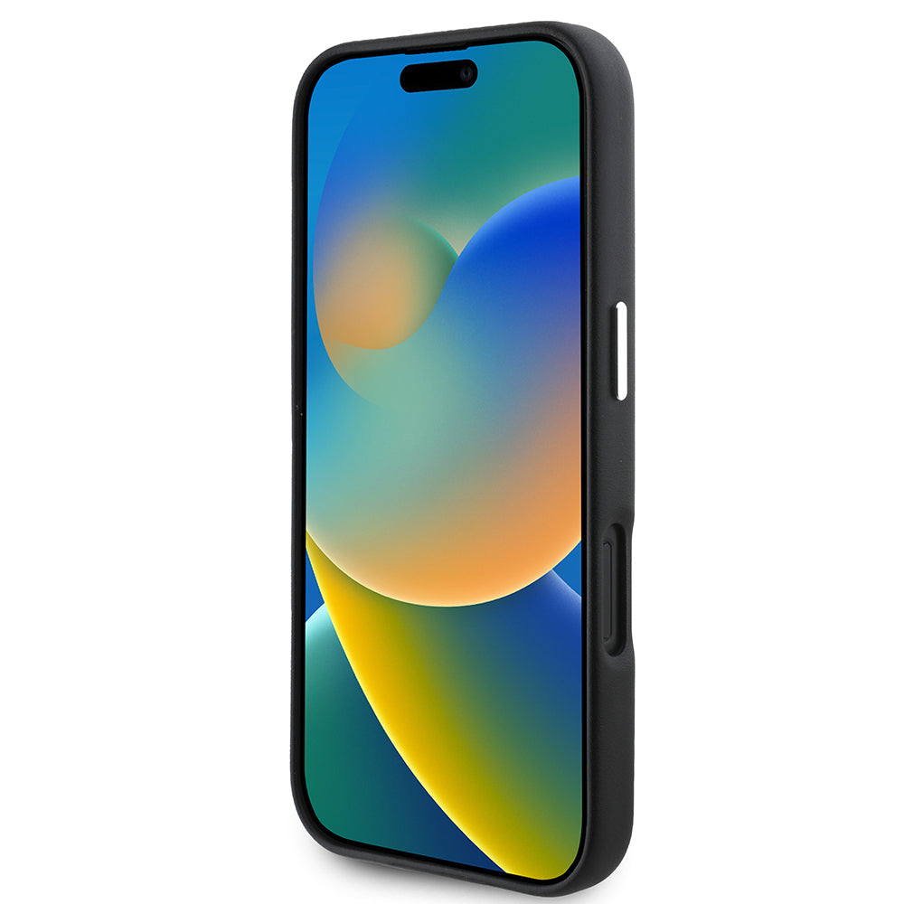 Apple iPhone 16 Kılıf Karl Lagerfeld Orjinal Lisanslı M-safe Şarj Özellikli Metal Kamera ve Buton Tasarımlı Plaka Logolu PU Deri Kapak Siyah