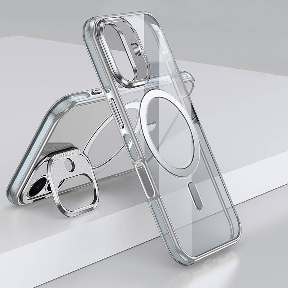 Apple iPhone 16 Kılıf M-safe Şarj Özellikli Wlons Standlı Efsane Kapak Gri