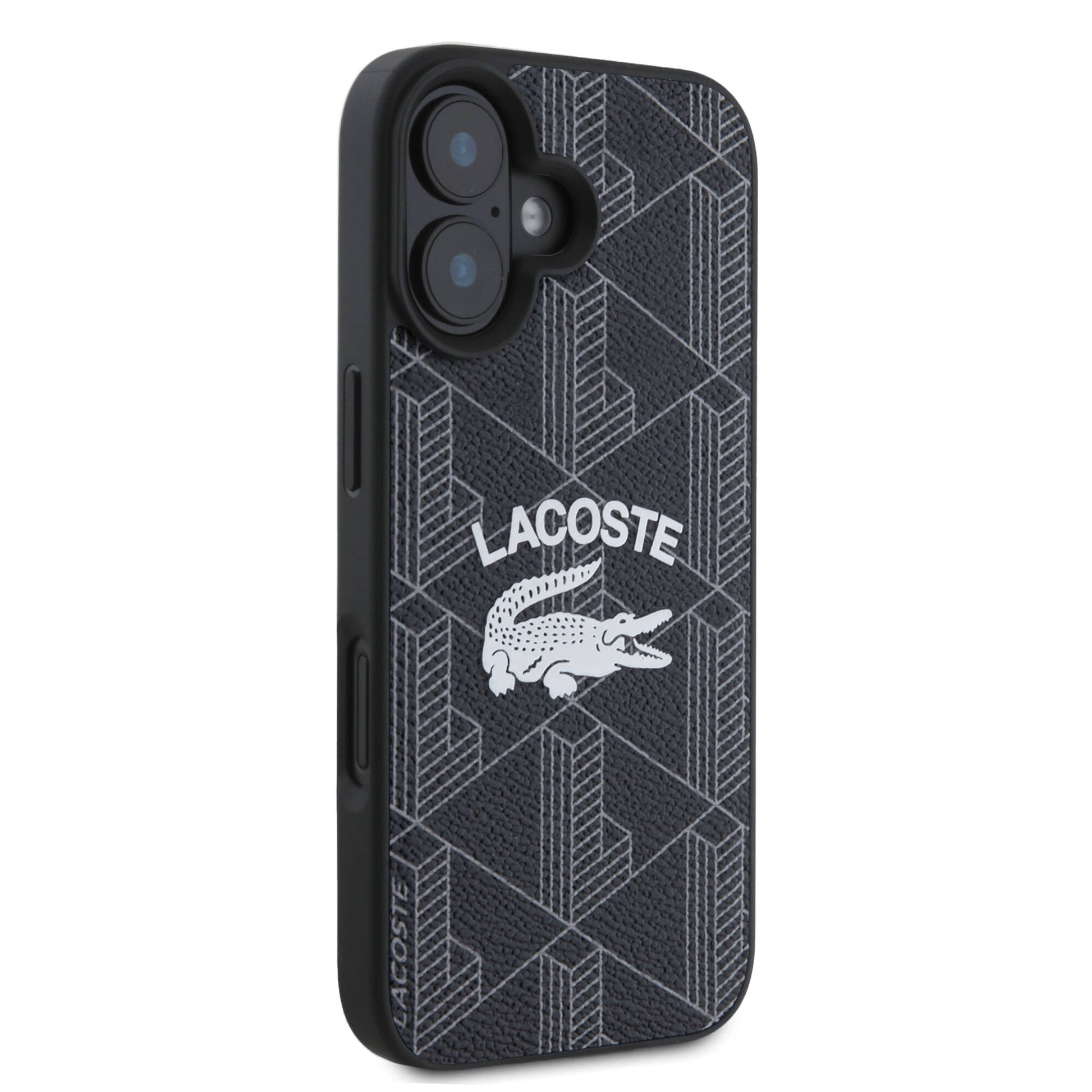 Apple iPhone 16 Plus Kılıf Lacoste Orjinal Lisanslı M-safe Şarj Özellikli Mono Vintage Logo Kapak Siyah