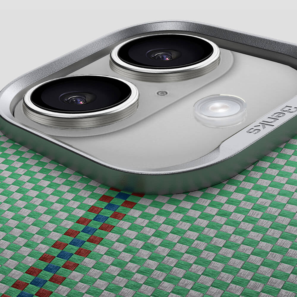 Apple iPhone 16 Plus Kılıf M-safe Şarj Özellikli Karbon Fiber Tasarımlı Benks Passion Green ArmorAir Kevlar Kapak Yeşil