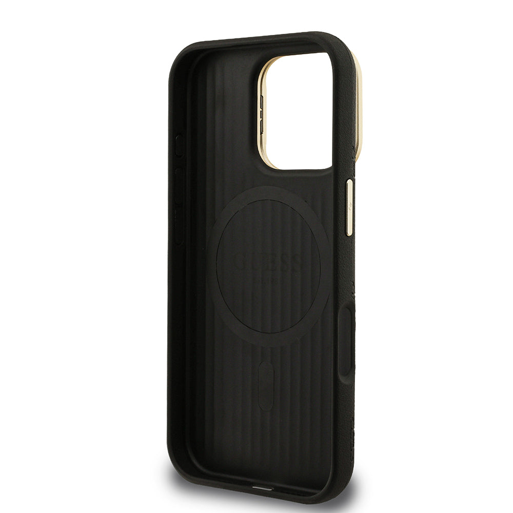 iPhone 16 Pro Kılıf Guess Orjinal Lisanslı M-safe Şarj Özellikli Sıcak Baskılı Yazı Logolu Kamera Standlı PU Deri Peony Kapak