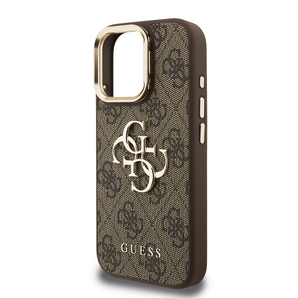 iPhone 16 Pro Kılıf Guess Orjinal Lisanslı PU Deri 4G Desenli Metal Büyük 4G ve Yazı Logolu Kamera Standlı Kapak
