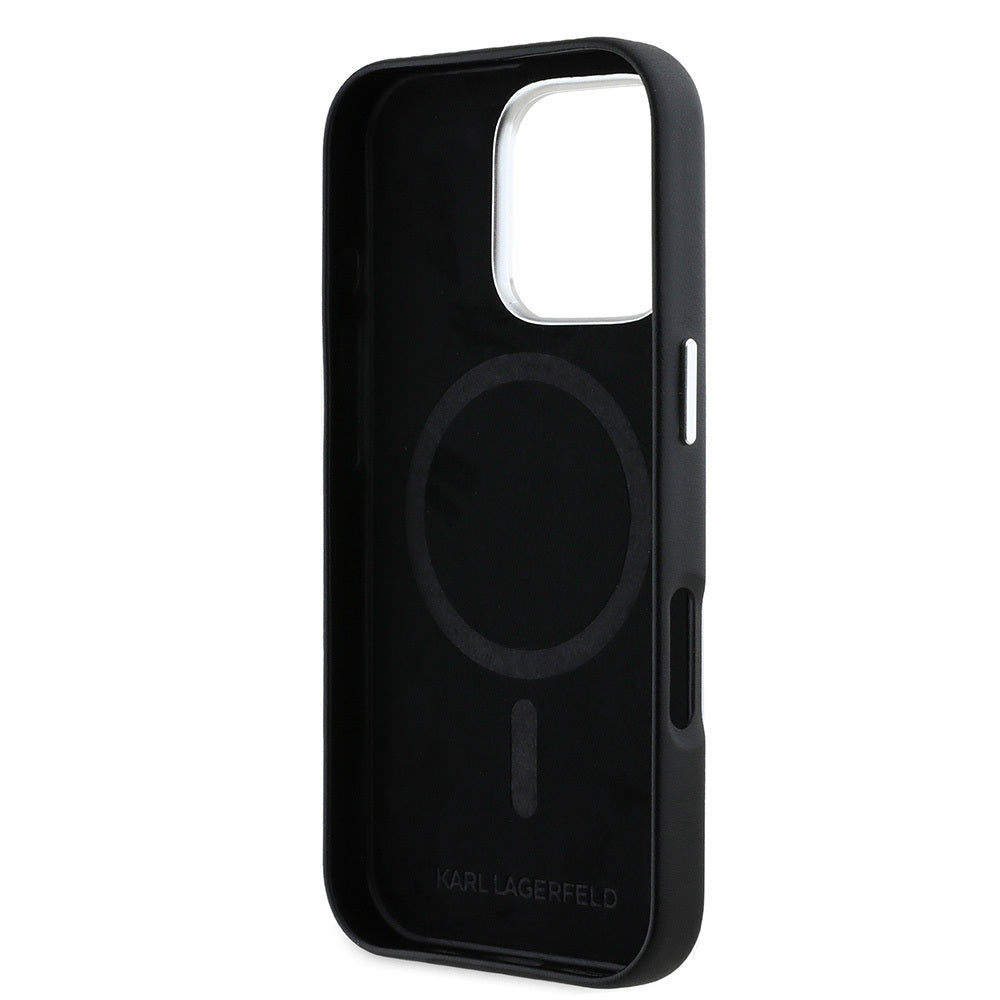 iPhone 16 Pro Kılıf Karl Lagerfeld Orjinal Lisanslı Magsafe Şarj Özellikli Metal Kamera ve Buton Tasarımlı Plaka Logolu PU Deri Kapak