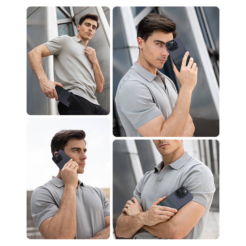 iPhone 16 Pro Kılıf Magsafe Şarj Özellikli Karbon Fiber Tasarımlı Benks Aurora ArmorPro Kevlar Kapak