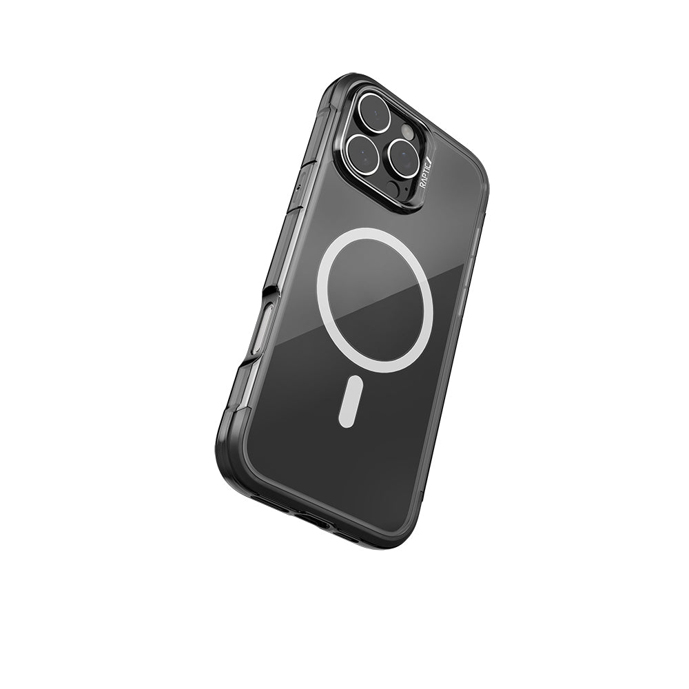Apple iPhone 16 Pro Kılıf M-safe Şarj Özellikli Raptic Air Serisi Airbag Tasarımlı Metal Köşelikli Şeffaf Kapak Siyah