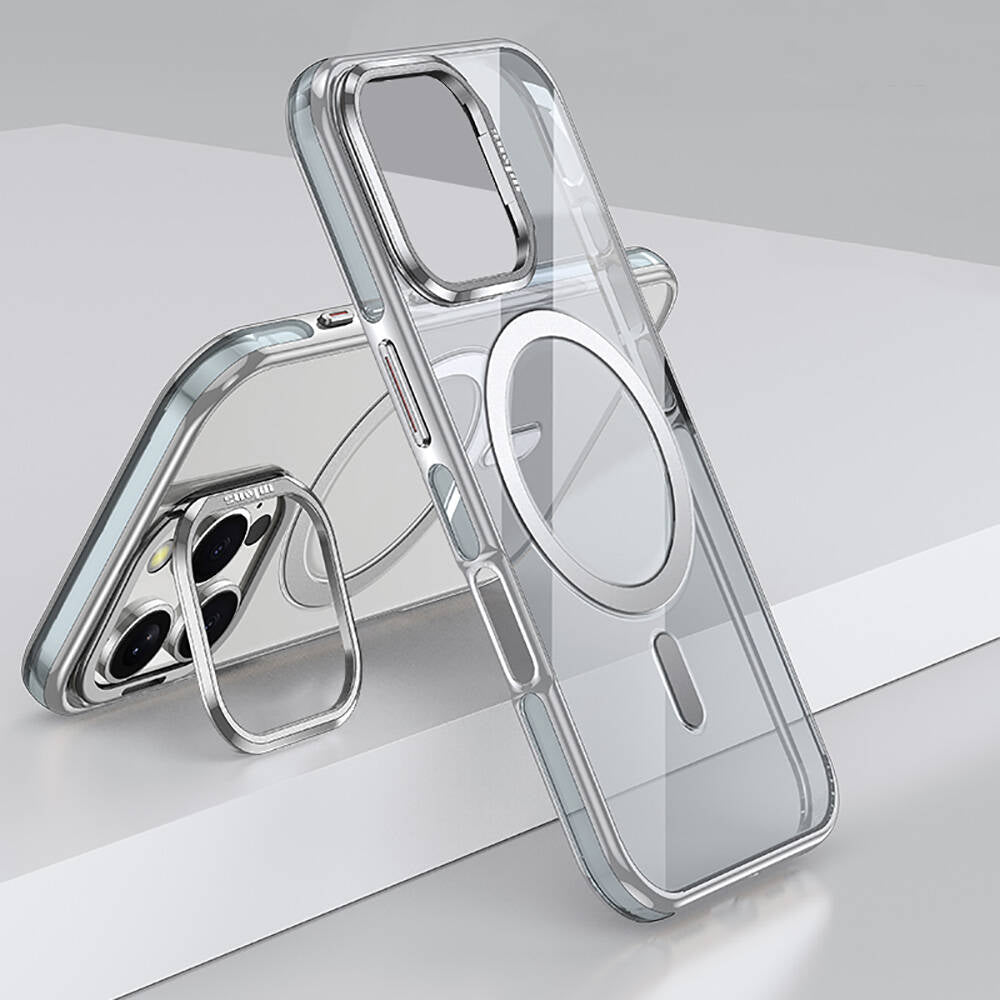 Apple iPhone 16 Pro Kılıf M-safe Şarj Özellikli Wlons Standlı Efsane Kapak Gri