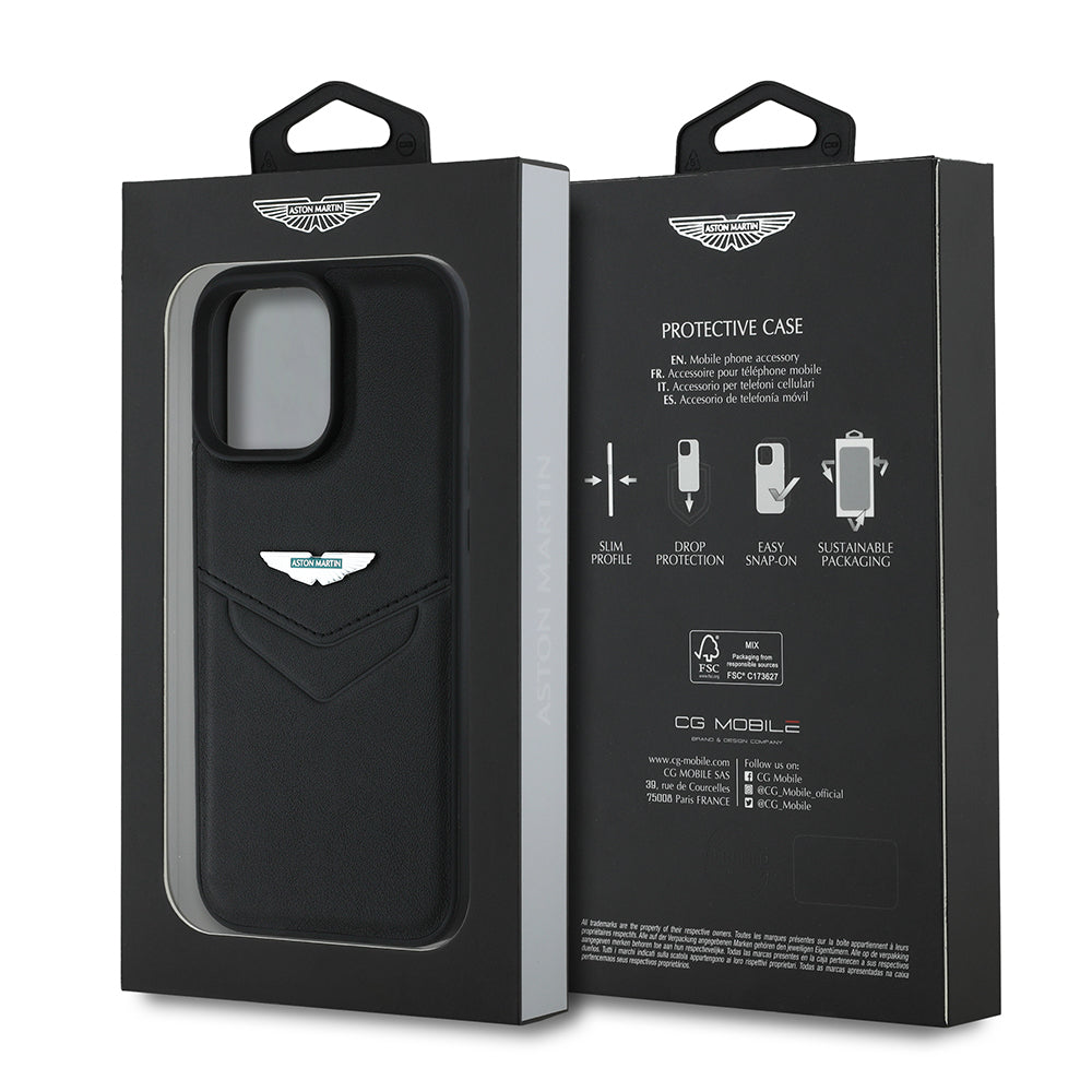 Apple iPhone 16 Pro Max Kılıf Aston Martin Orjinal Lisanslı Victory Dizayn PU Deri Metal Logolu Kapak Siyah