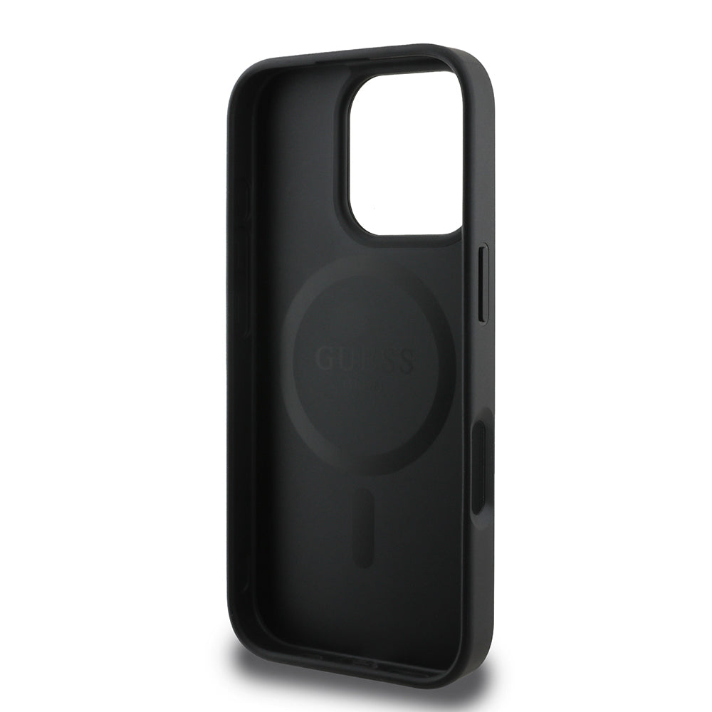 iPhone 16 Pro Max Kılıf Guess Orjinal Lisanslı Magsafe Şarj Özellikli PU Halkalı 4G Desenli Yazı Logolu Kapak