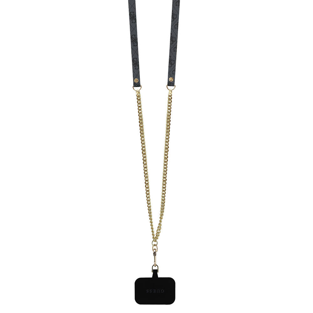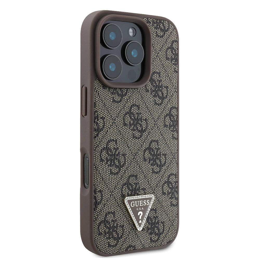 iPhone 16 Pro Max Kılıf Guess Orjinal Lisanslı PU Deri Taşlı Metal Üçgen Logolu Çapraz Vücut Askılı 4G Desenli Kapak