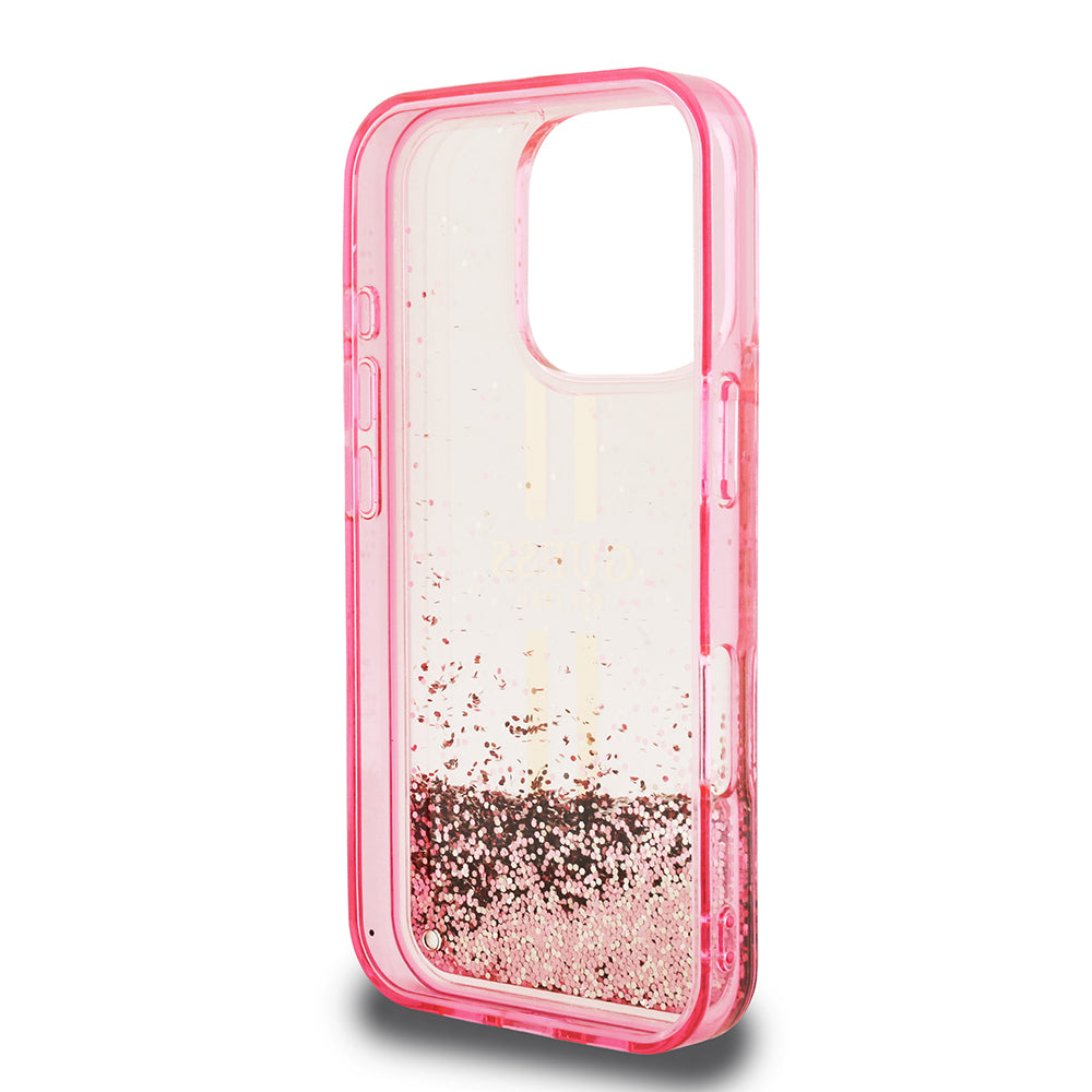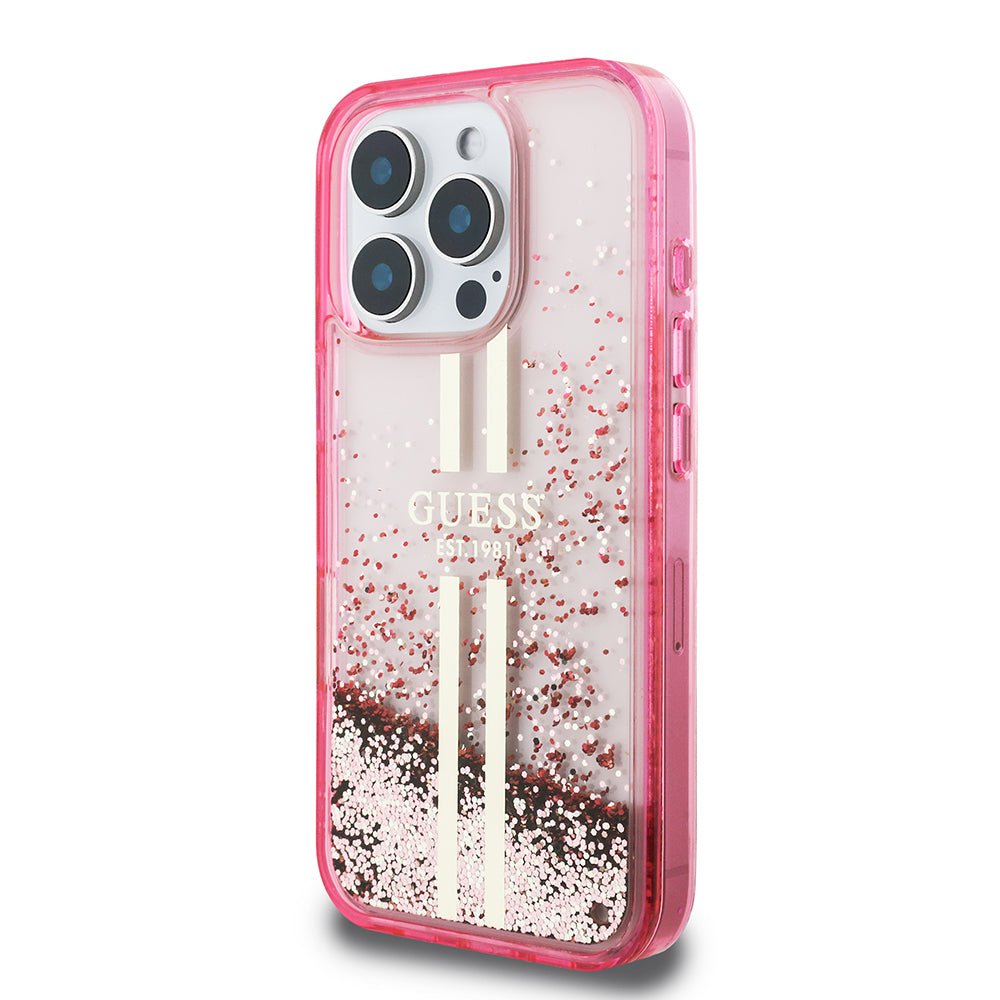 iPhone 16 Pro Max Kılıf Guess Orjinal Lisanslı Transparan Sıvılı Simli Altın Çizgili Kapak