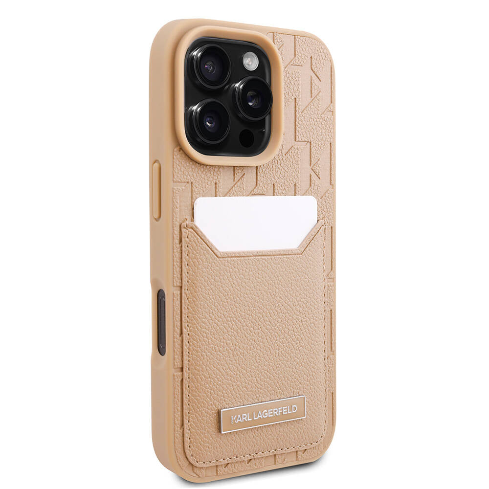 iPhone 16 Pro Max Kılıf Karl Lagerfeld Orjinal Lisanslı KL Desenli Kartlıklı Monogram Kapak