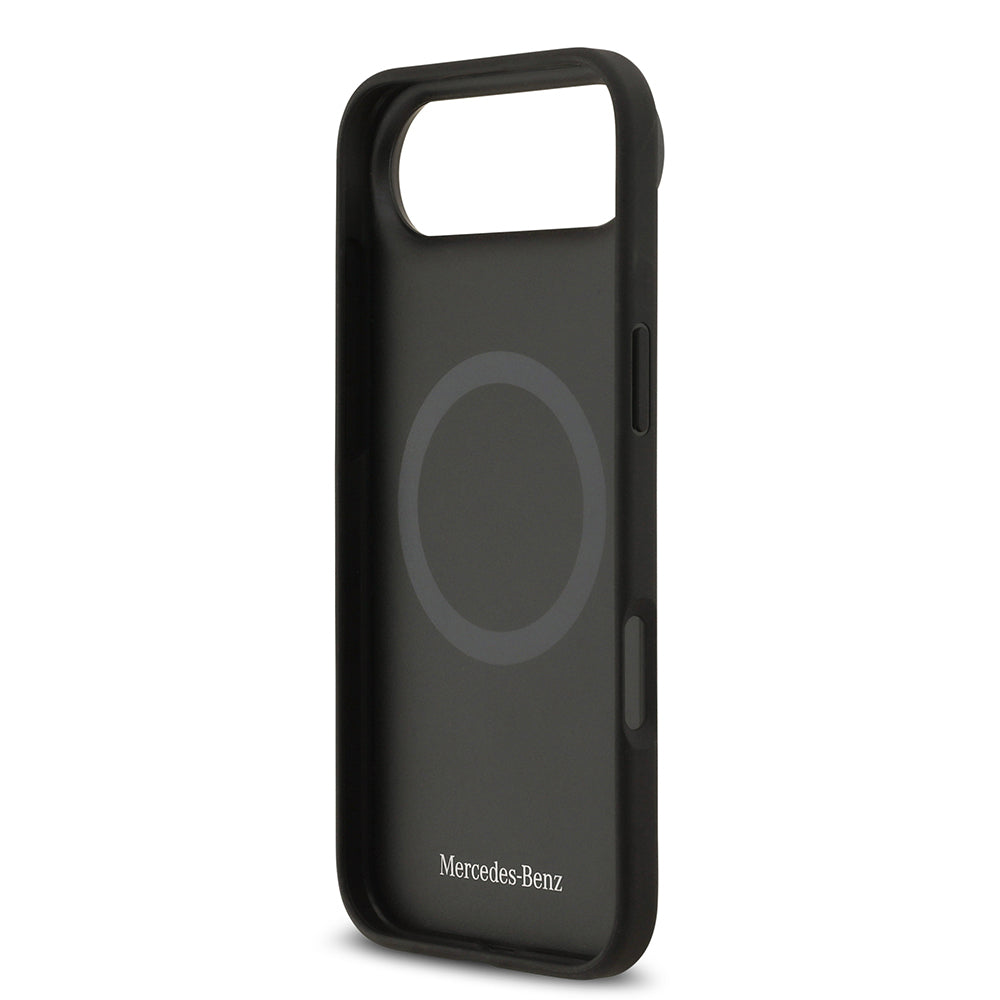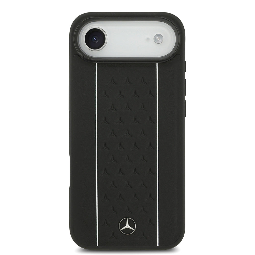 iPhone 17 Air Kılıf Mercedes Benz Orjinal Lisanslı M-safe Şarj Özellikli Şeritli Yıldız Desenli Metal Logolu Deri Kapak