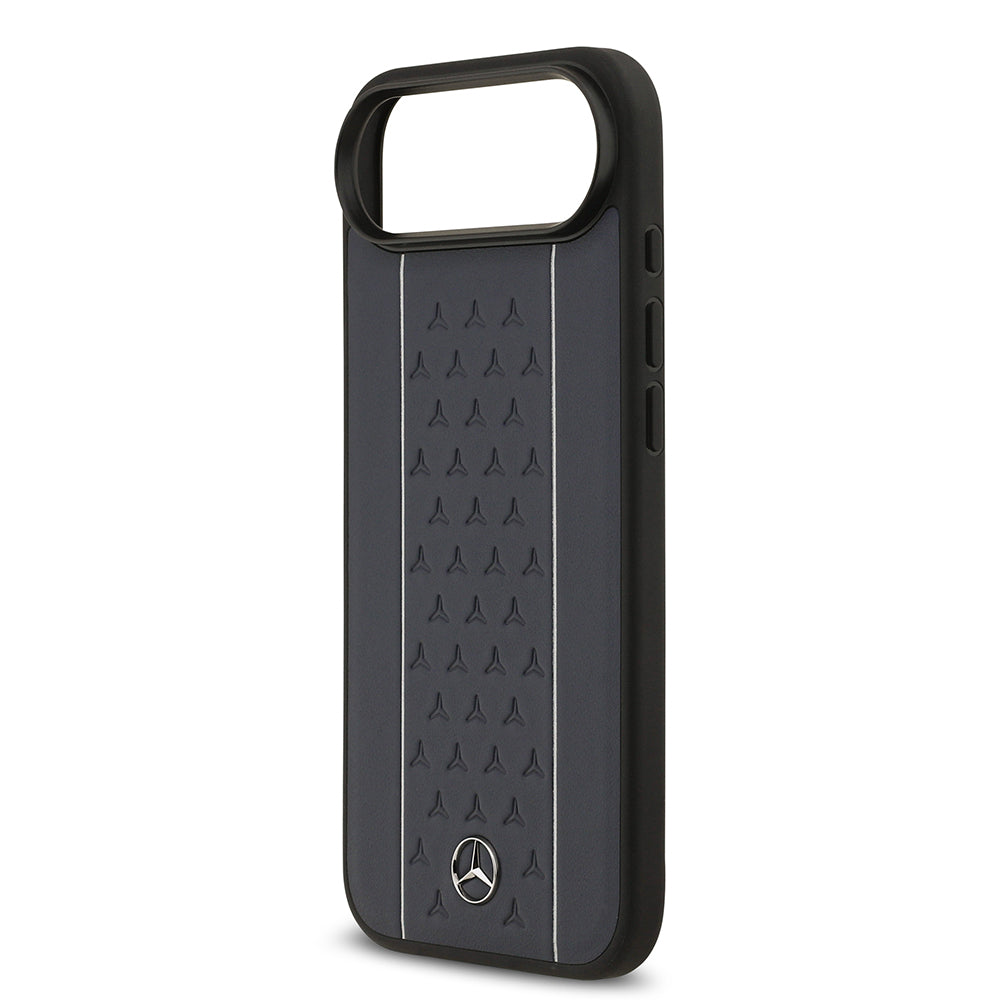 Apple iPhone 17 Air Kılıf Mercedes Benz Orjinal Lisanslı M-safe Şarj Özellikli Şeritli Yıldız Desenli Metal Logolu Deri Kapak Lacivert