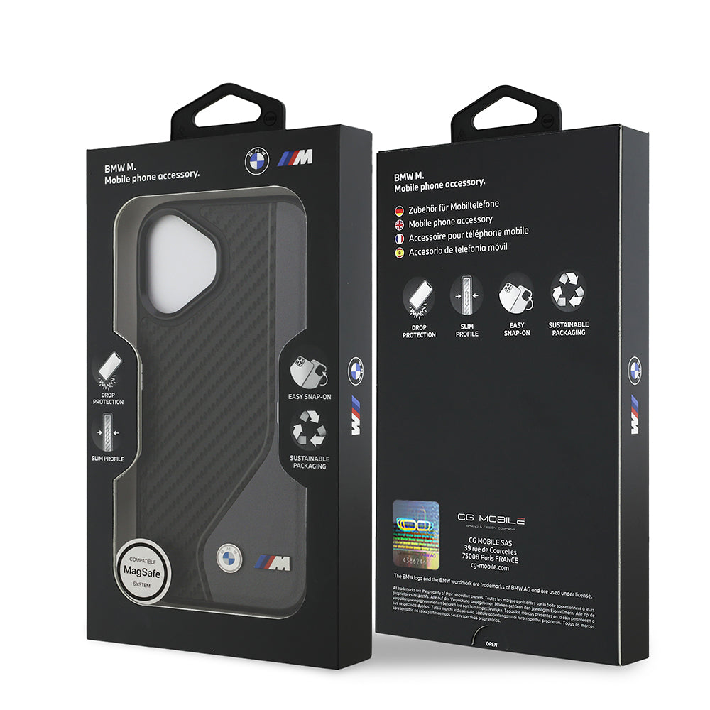 iPhone 17 Kılıf BMW Orjinal Lisanslı M-safe Şarj Özellikli Metal BMW ve M Logolu PU Karbon Tasarımlı Kapak