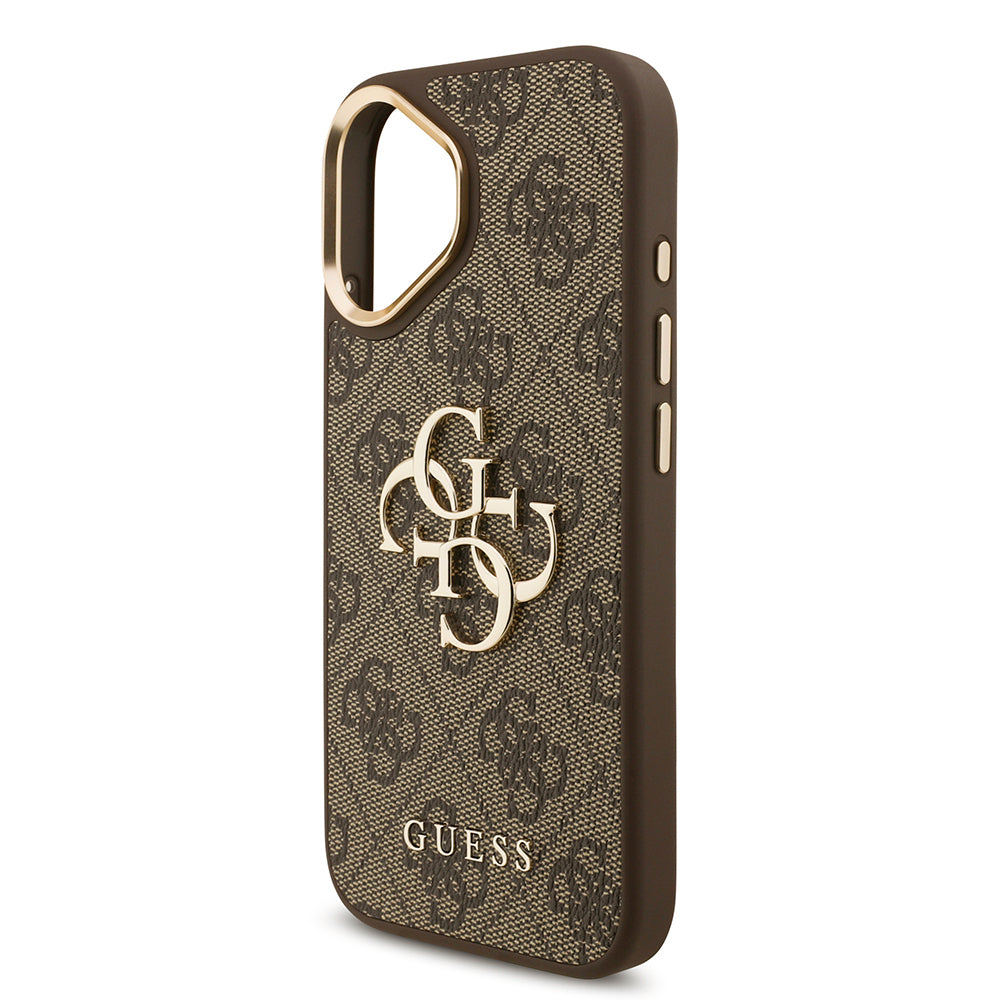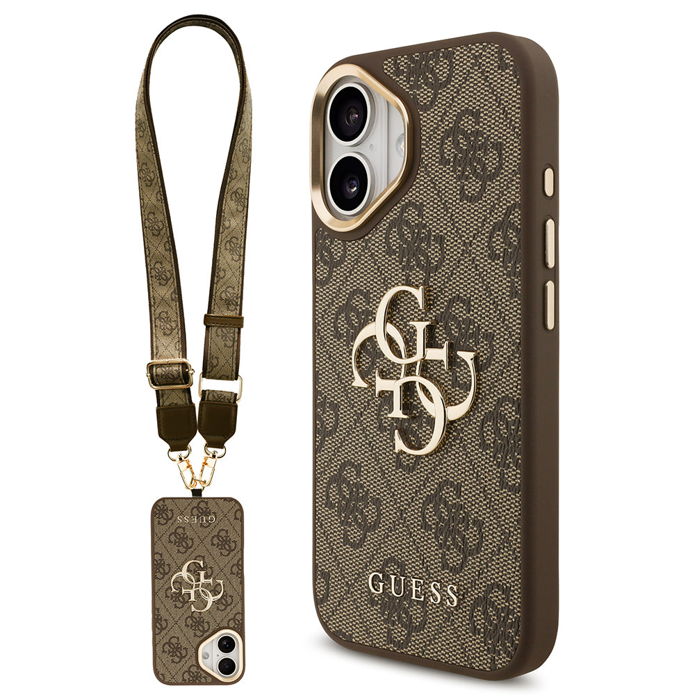 Apple iPhone 17 Kılıf Guess Orjinal Lisanslı 4G Büyük Metal Logolu Kalın Askılı Kapak Kahverengi