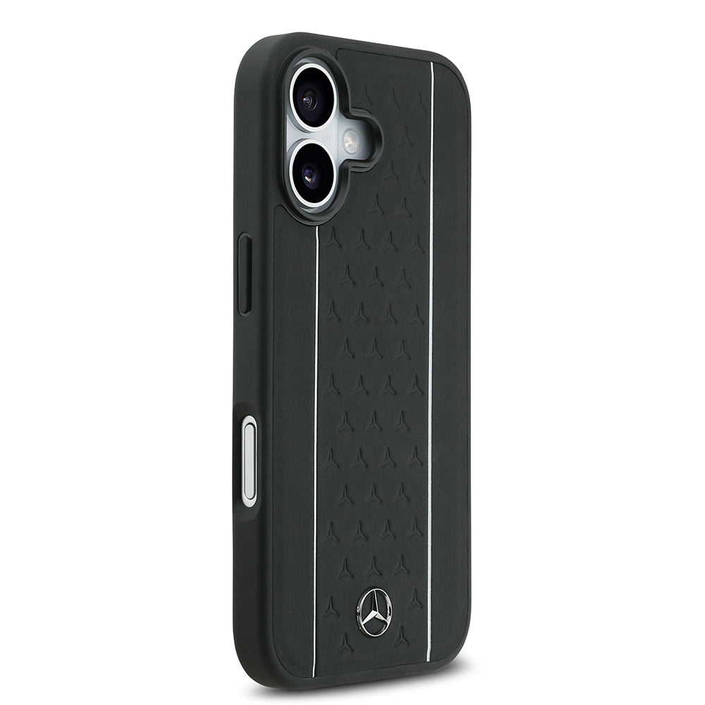 iPhone 17 Kılıf Mercedes Benz Orjinal Lisanslı M-safe Şarj Özellikli Şeritli Yıldız Desenli Metal Logolu Deri Kapak