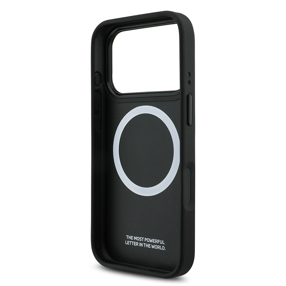 Apple iPhone 17 Pro Kılıf BMW Orjinal Lisanslı M-safe Şarj Özellikli M Logolu Üç Şeritli Delikli Deri Kapak Siyah
