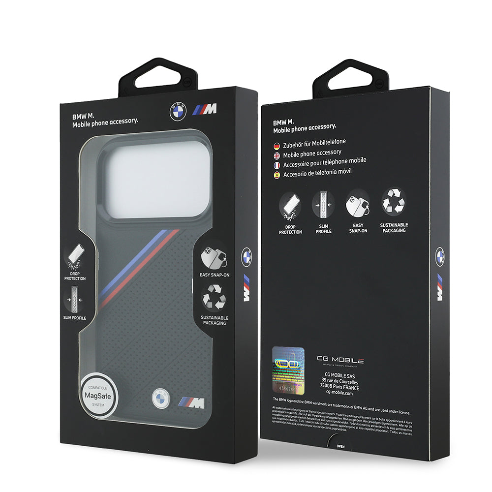 iPhone 17 Pro Kılıf BMW Orjinal Lisanslı M-safe Şarj Özellikli M Logolu Üç Şeritli Delikli Deri Kapak