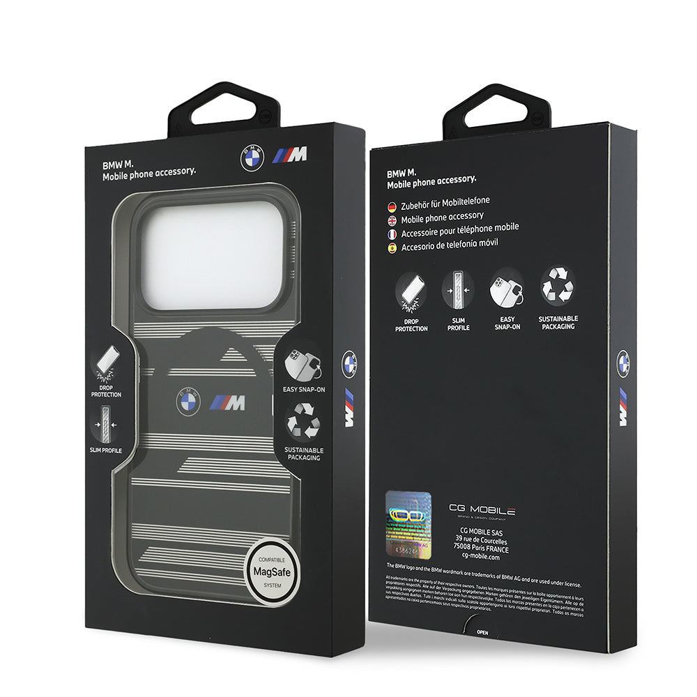 iPhone 17 Pro Kılıf BMW Orjinal Lisanslı M-safe Şarj Özellikli Metal Kamera Butonlu Yatay Şeritli M Dizayn Kapak