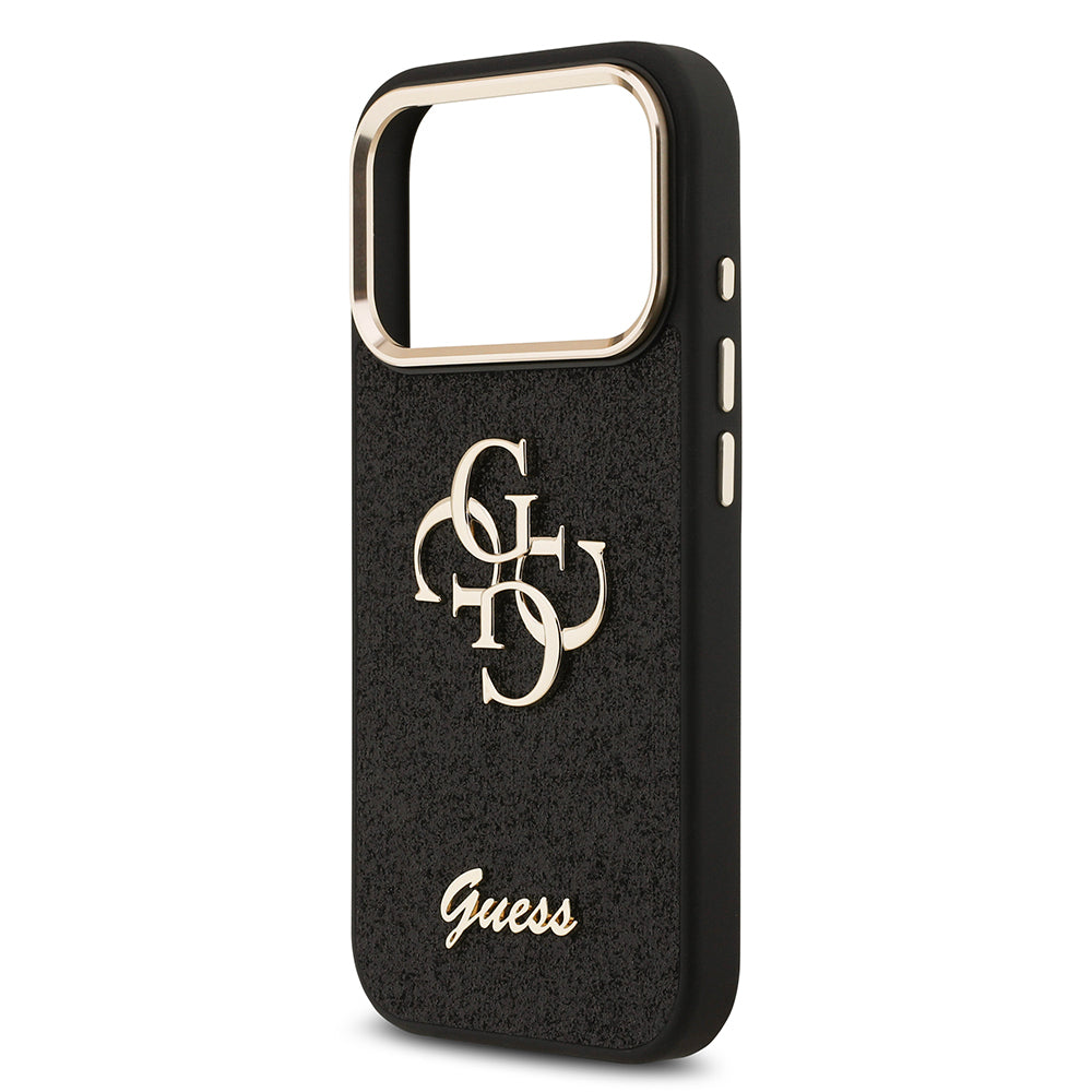 Apple iPhone 17 Pro Kılıf Guess Orjinal Lisanslı 4G Büyük Metal Kamera Çerçeveli ve Logolu Glitter Kapak Siyah
