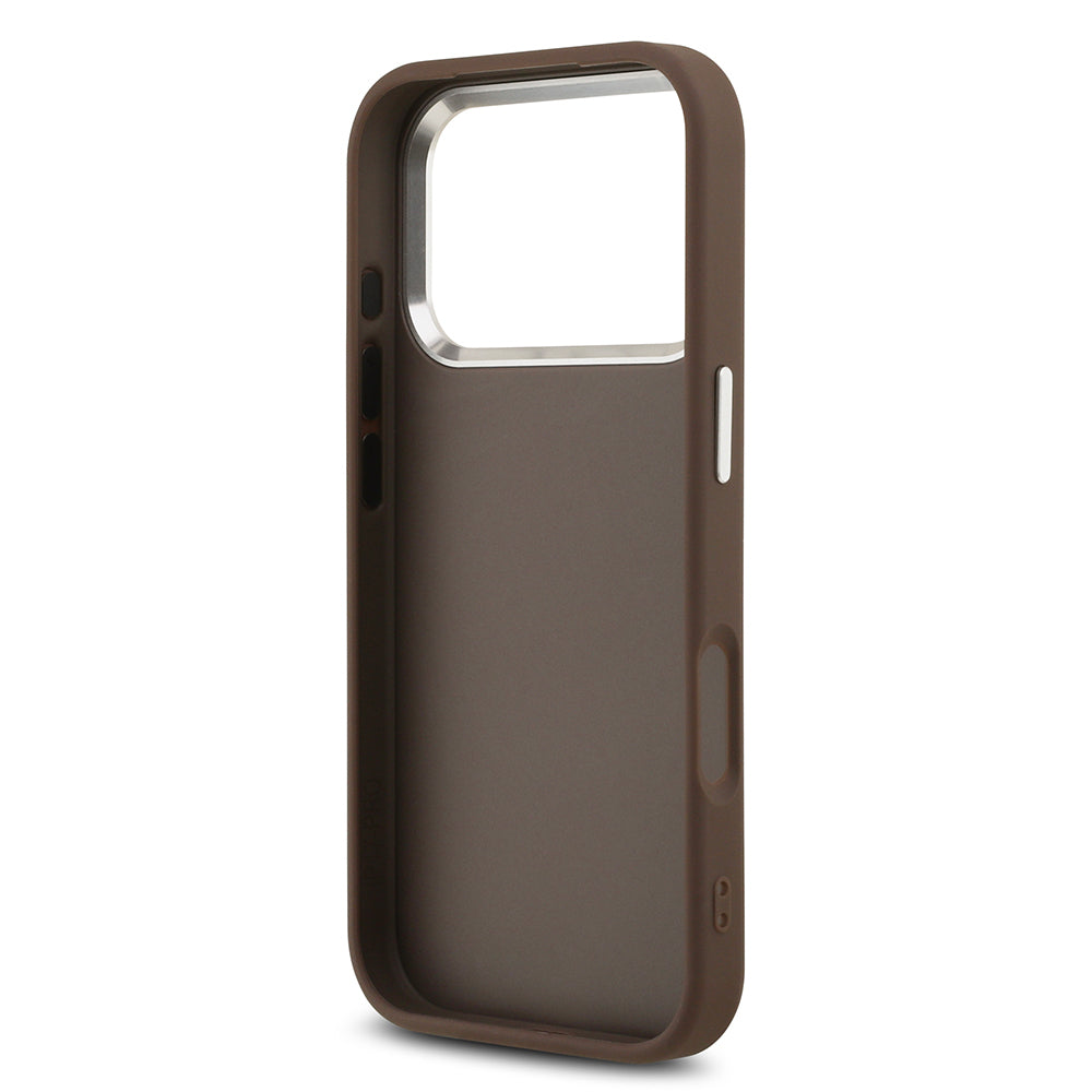 iPhone 17 Pro Kılıf Guess Orjinal Lisanslı Gümüş Metal Kamera Çerçeveli 4G Desenli Metal Büyük 4G ve Yazı Logolu Kapak