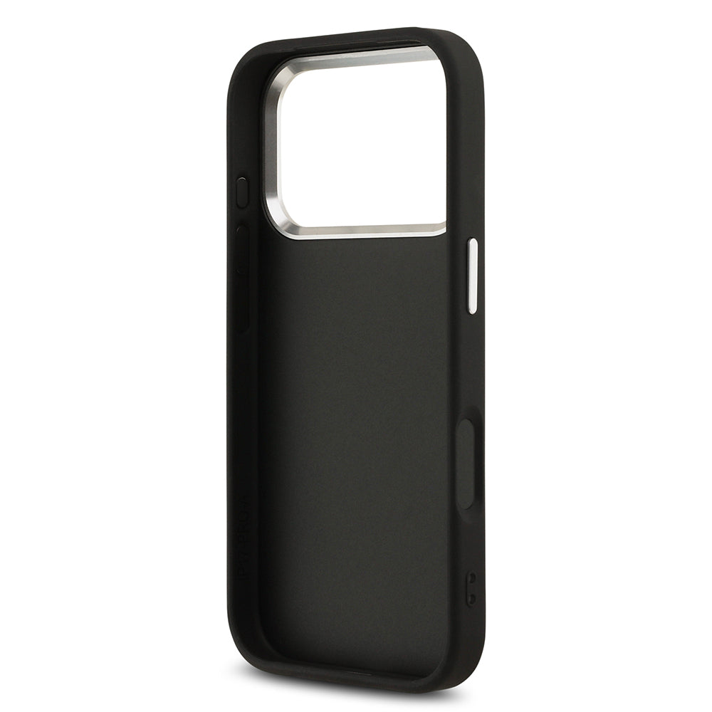 Apple iPhone 17 Pro Kılıf Guess Orjinal Lisanslı Gümüş Metal Kamera Çerçeveli 4G Desenli Metal Büyük 4G ve Yazı Logolu Kapak Siyah