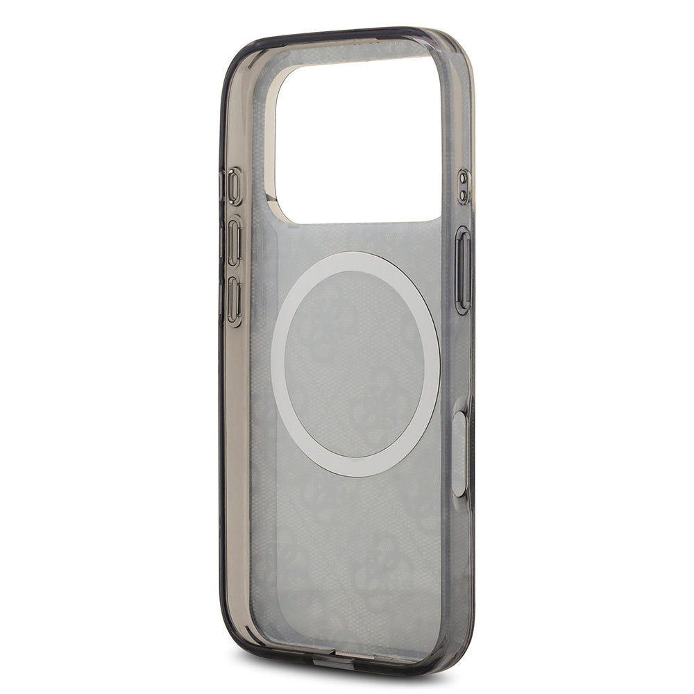 Apple iPhone 17 Pro Kılıf Guess Orjinal Lisanslı M-safe Şarj Özellikli IML Peony ve 4G Desenli Klasik Logolu Kapak Siyah