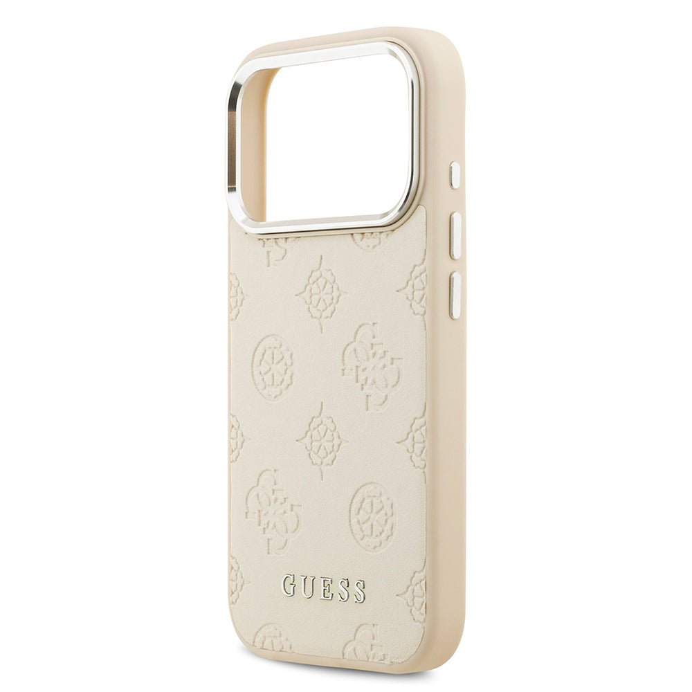 Apple iPhone 17 Pro Kılıf Guess Orjinal Lisanslı M-safe Şarj Özellikli Sıcak Baskılı Klasik Yazı Logolu PU Deri Peony Kapak Bej