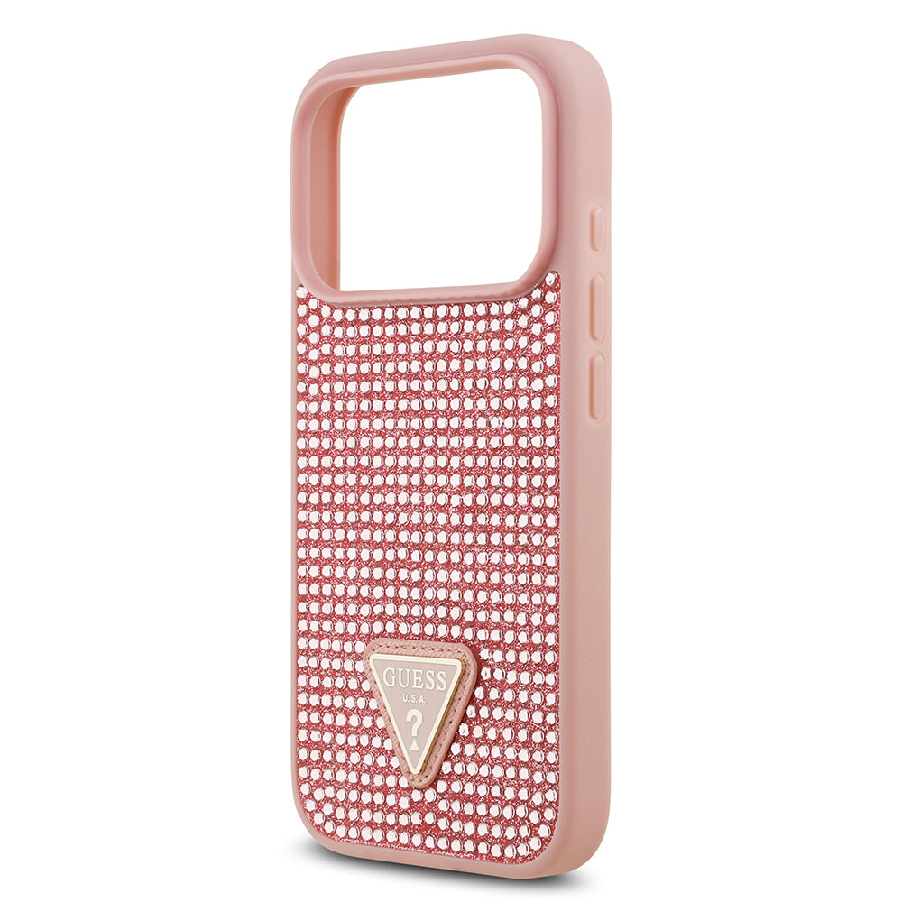 Apple iPhone 17 Pro Kılıf Guess Orjinal Lisanslı Taşlı Arka Yüzey Üçgen Logolu Kapak Pembe