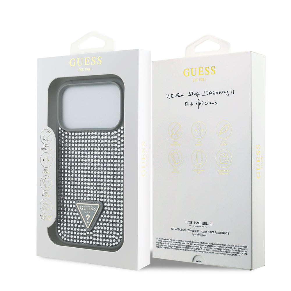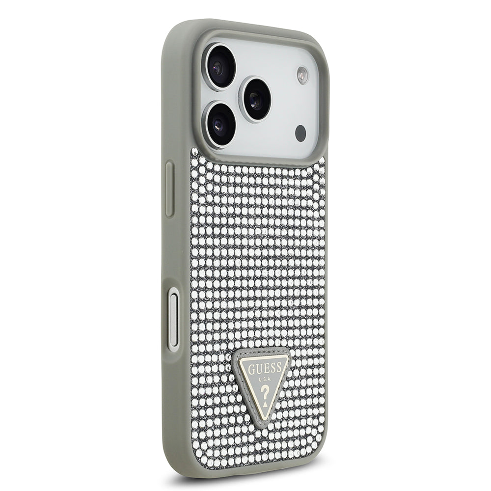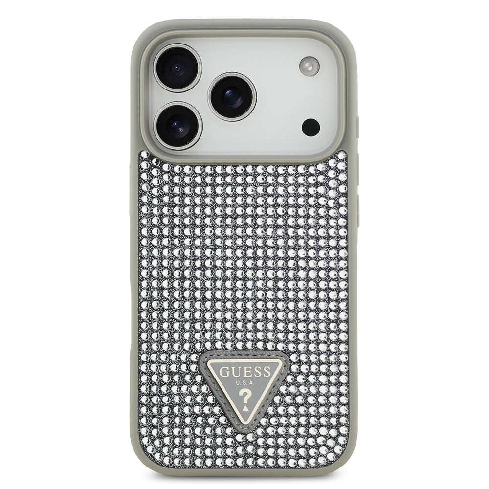 iPhone 17 Pro Kılıf Guess Orjinal Lisanslı Taşlı Arka Yüzey Üçgen Logolu Kapak