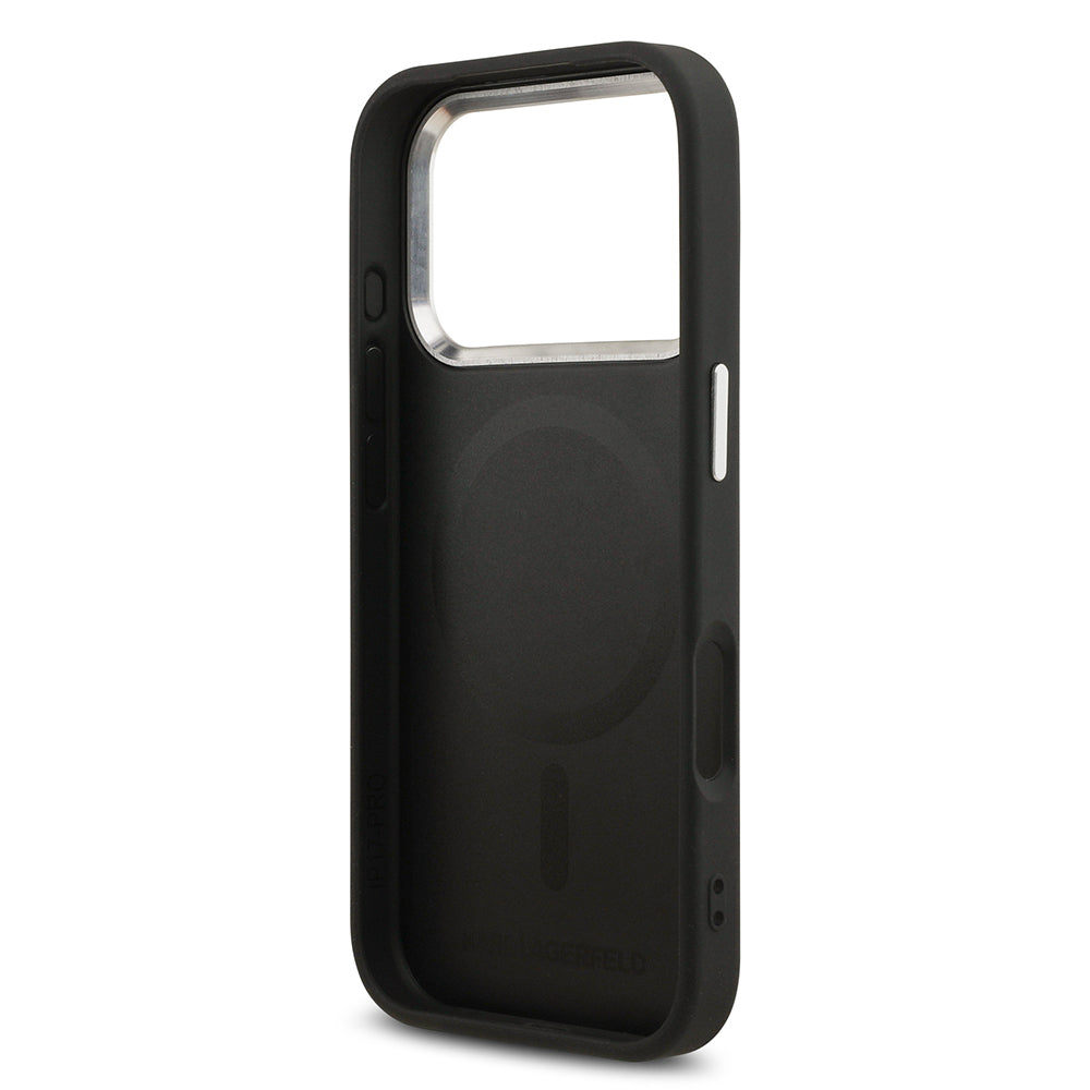 Apple iPhone 17 Pro Kılıf Karl Lagerfeld Orjinal Lisanslı M-safe Şarj Özellikli Metal Kamera ve Buton Tasarımlı Choupette PU Deri Kapak Siyah