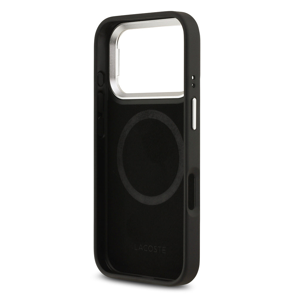 iPhone 17 Pro Kılıf Lacoste Orjinal Lisanslı M-safe Şarj Özellikli PU Pike Desenli Standlı Metal Logolu Kapak
