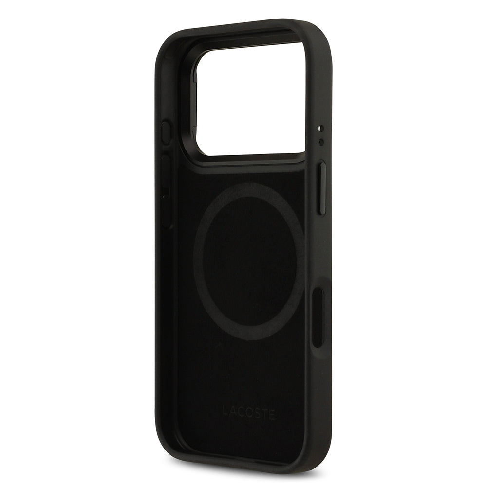 iPhone 17 Pro Kılıf Lacoste Orjinal Lisanslı M-safe Şarj Özellikli Standlı PU Deri Karışık Monogram Desenli Kapak