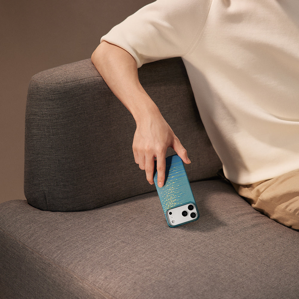 Fusion Weave LightRipple desenine sahip Glints of Gold tasarım, her dokunuşta kalite hissini artıran özel bir doku sunar. Bu etkileyici desen, cihazınıza sade ancak çarpıcı bir şıklık kazandırır. İnce işlenmiş aramid fiber yüzey, hem kaymaz bir tutuş sağlar hem de uzun süre dayanıklı kalır. Dışarı çıktığınızda elinizde premium bir aksesuar taşıyormuş hissi yaratır; masaya bıraktığınız anda bile zarif görünümü ile dikkat çeker.