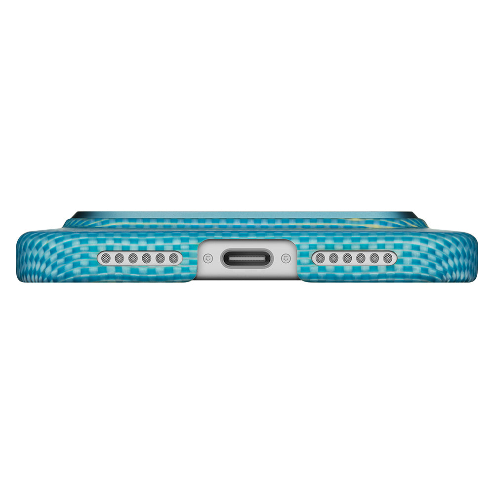 Apple iPhone 17 Pro Kılıf M-safe Şarj Özellikli Aramid Fiber Pitaka Glints of Gold Ultra Slim Serisi Kapak Mavi