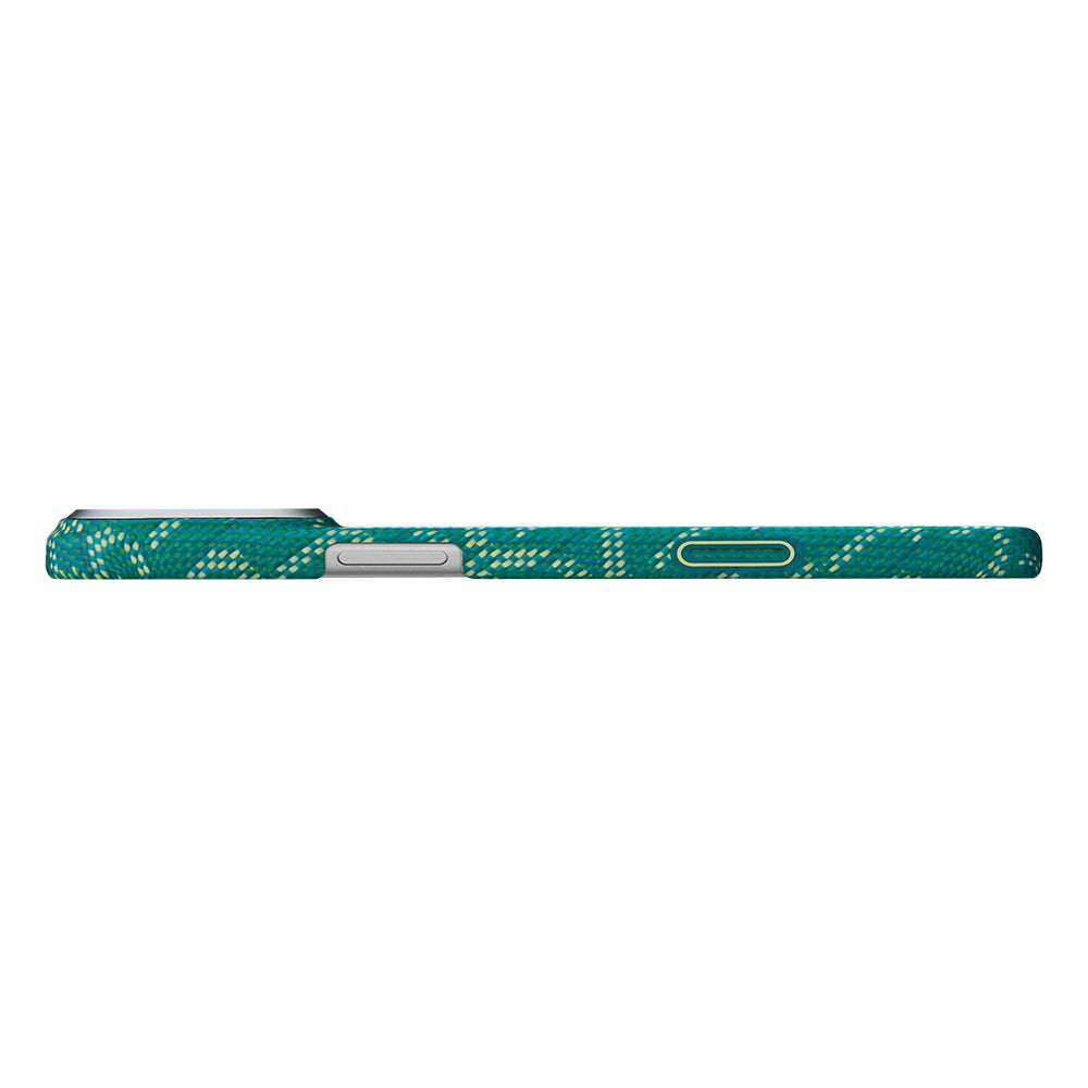 Apple iPhone 17 Pro Kılıf M-safe Şarj Özellikli Aramid Fiber Pitaka Tactile Woven Monogram Serisi Kapak Yeşil