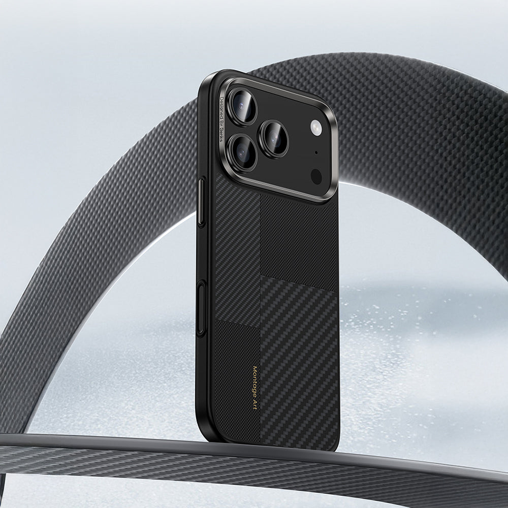 Apple iPhone 17 Pro Kılıf M-safe Şarj Özellikli Karbon Fiber Benks Montage Hybrid ArmorPro Kevlar Kapak Siyah